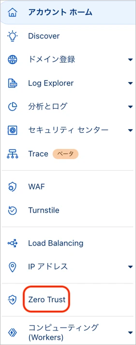 CloudflareのメニューからZero Trustをクリックします。
