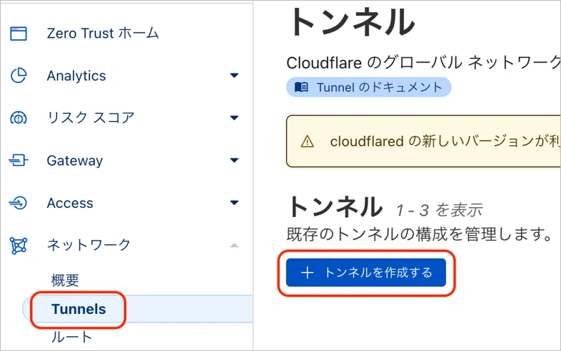 Tunnels -> 「トンネルを作成する」を選択します。
