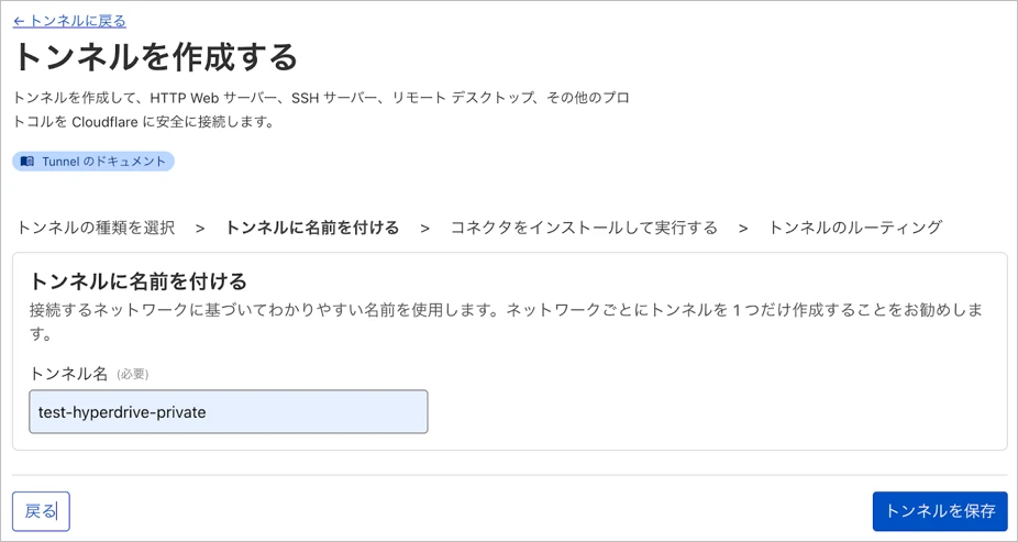 トンネル名に分かりやすい任意の値を入力して「トンネルを保存」をクリックします。