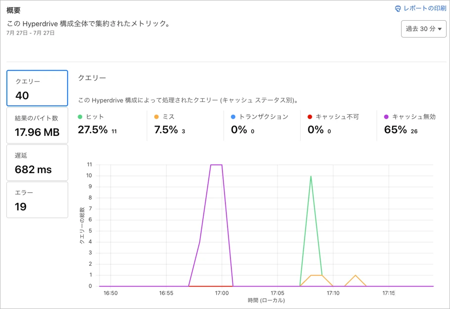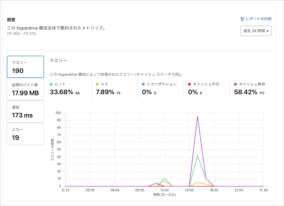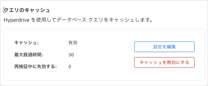 次にHyperdriveのキャッシュを有効にして検証してみます。