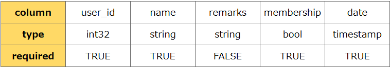 │ user_id │ name │ remarks │ membership │ date │