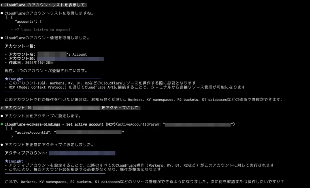 ⏺ Cloudflareのアカウント情報を取得しました。