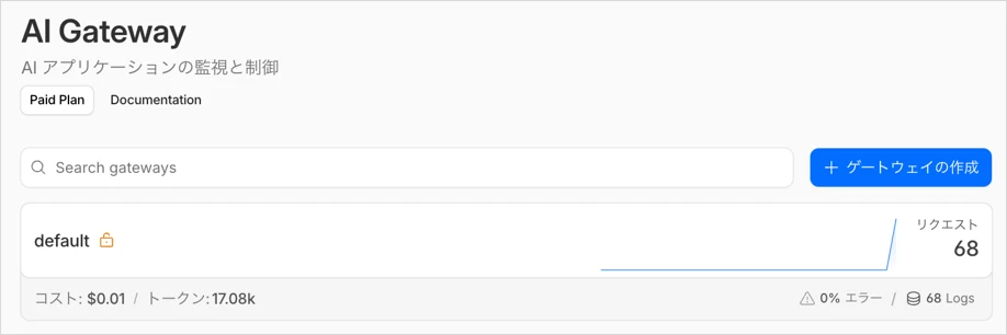 ※AI GatewayはどれくらいAIを使用しているかなどを可視化できるサービスになります。
