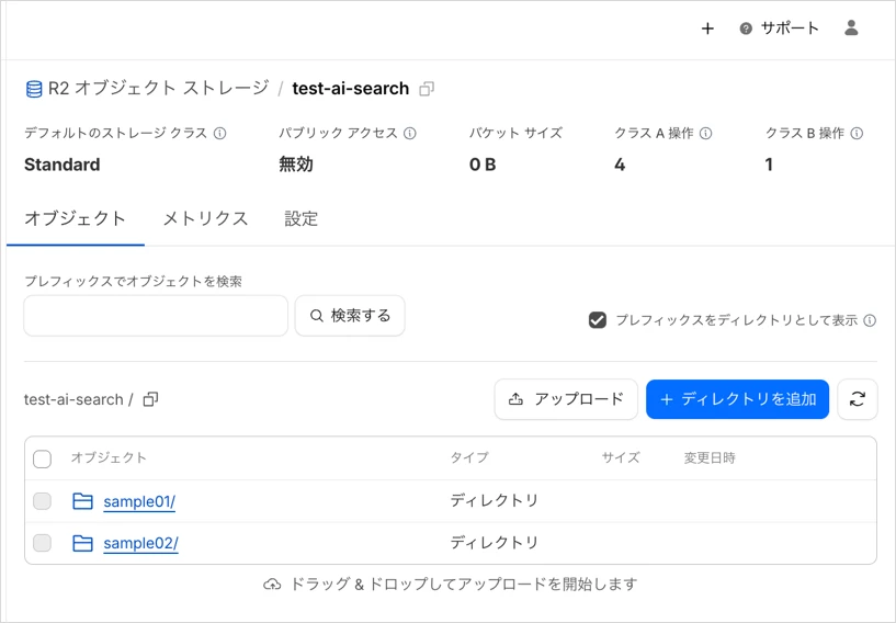 R2にディレクトリを2つ作成しましたが、試しに片方(sample01ディレクトリ)だけを検索対象とするように変更してみます。